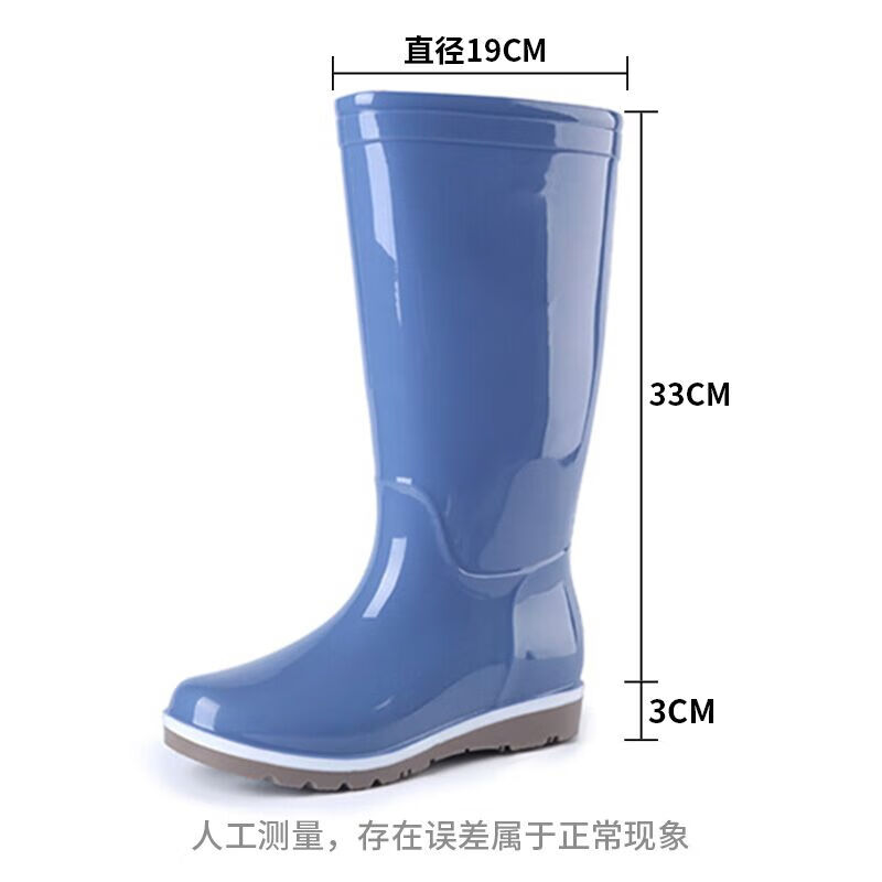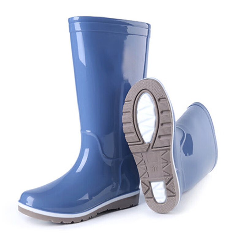 品之德 女士高筒雨鞋 防水防滑耐油耐酸碱水鞋 防汛胶鞋透气内里 蓝色36