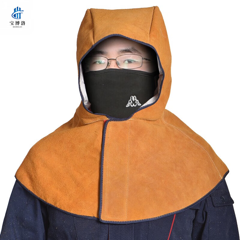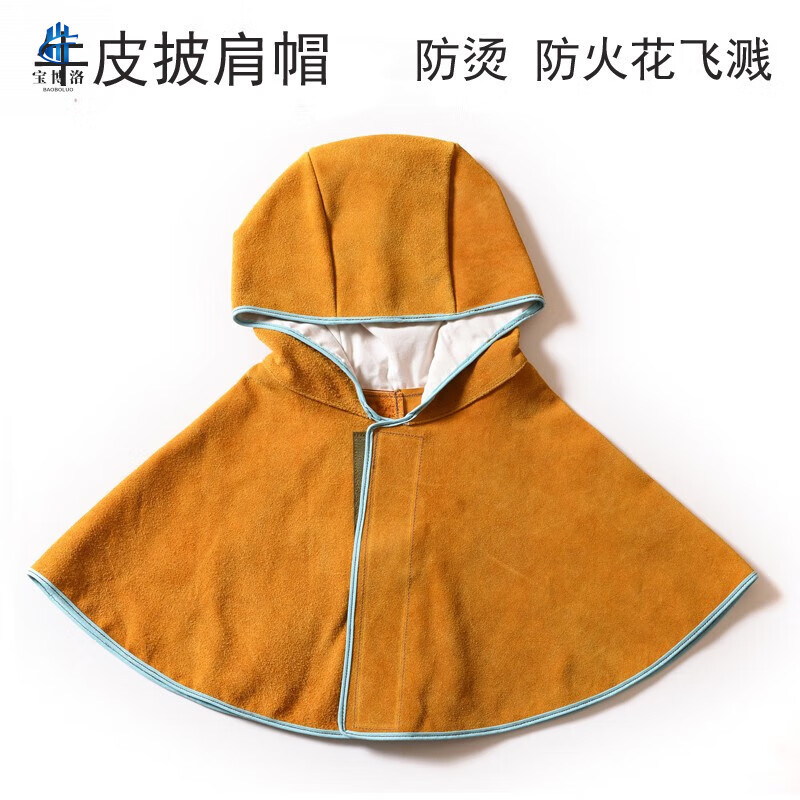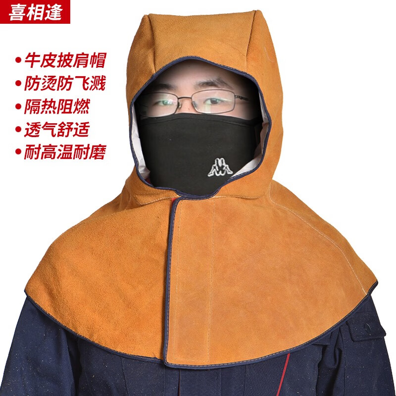 牛皮披肩帽电焊防火花飞溅烧焊帽焊工焊接防烫防护帽搬运工保护帽 橘色披肩帽