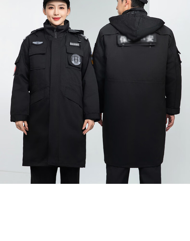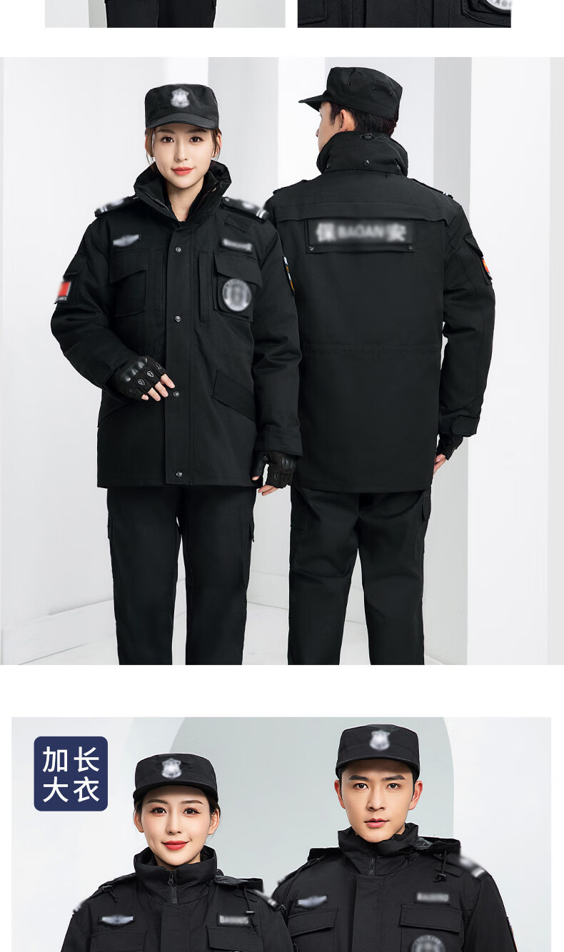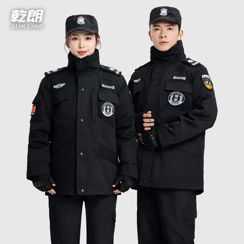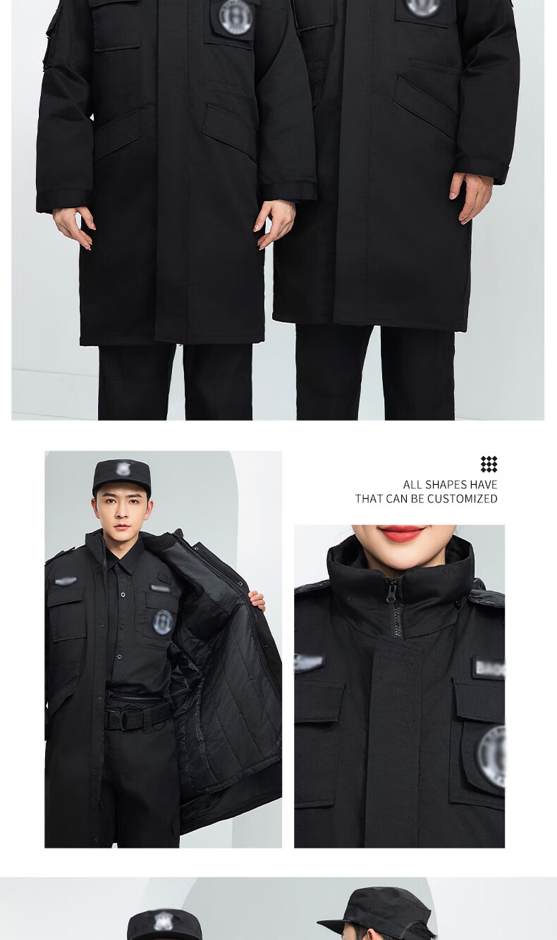 乾朗 保安服套装冬装执勤服保暖加厚加长款棉服安保棉大衣酒店物业门卫保安巡逻站岗执勤工作制服可定制logo 斜纹中长大衣+贴标180