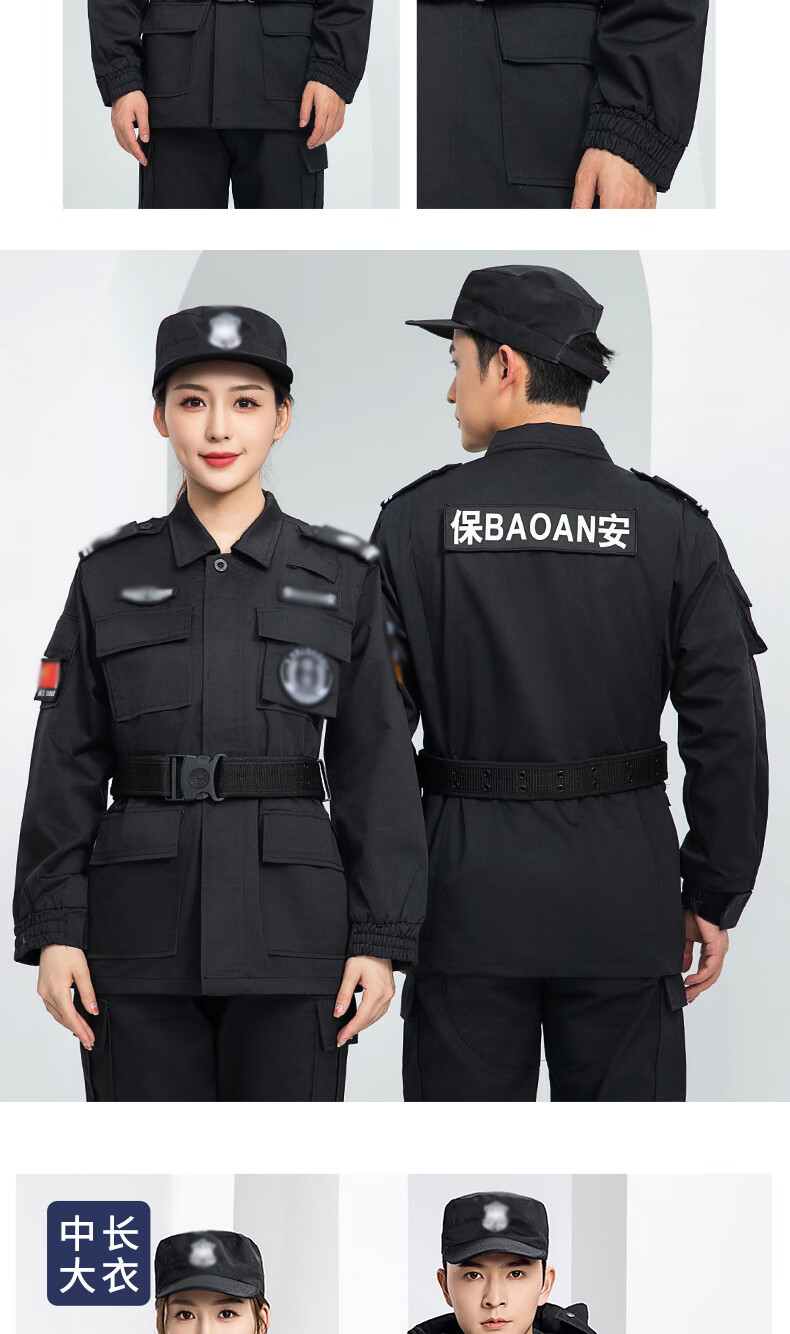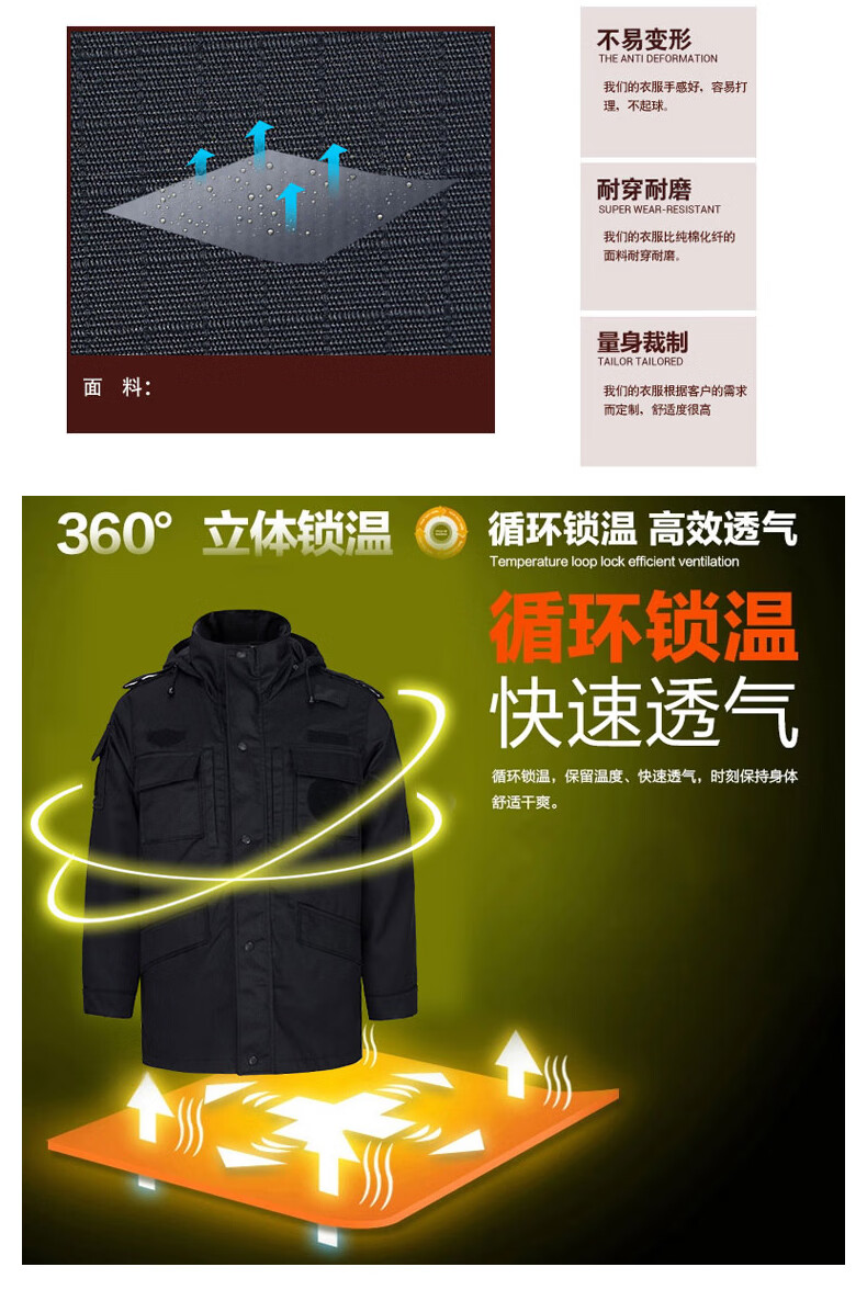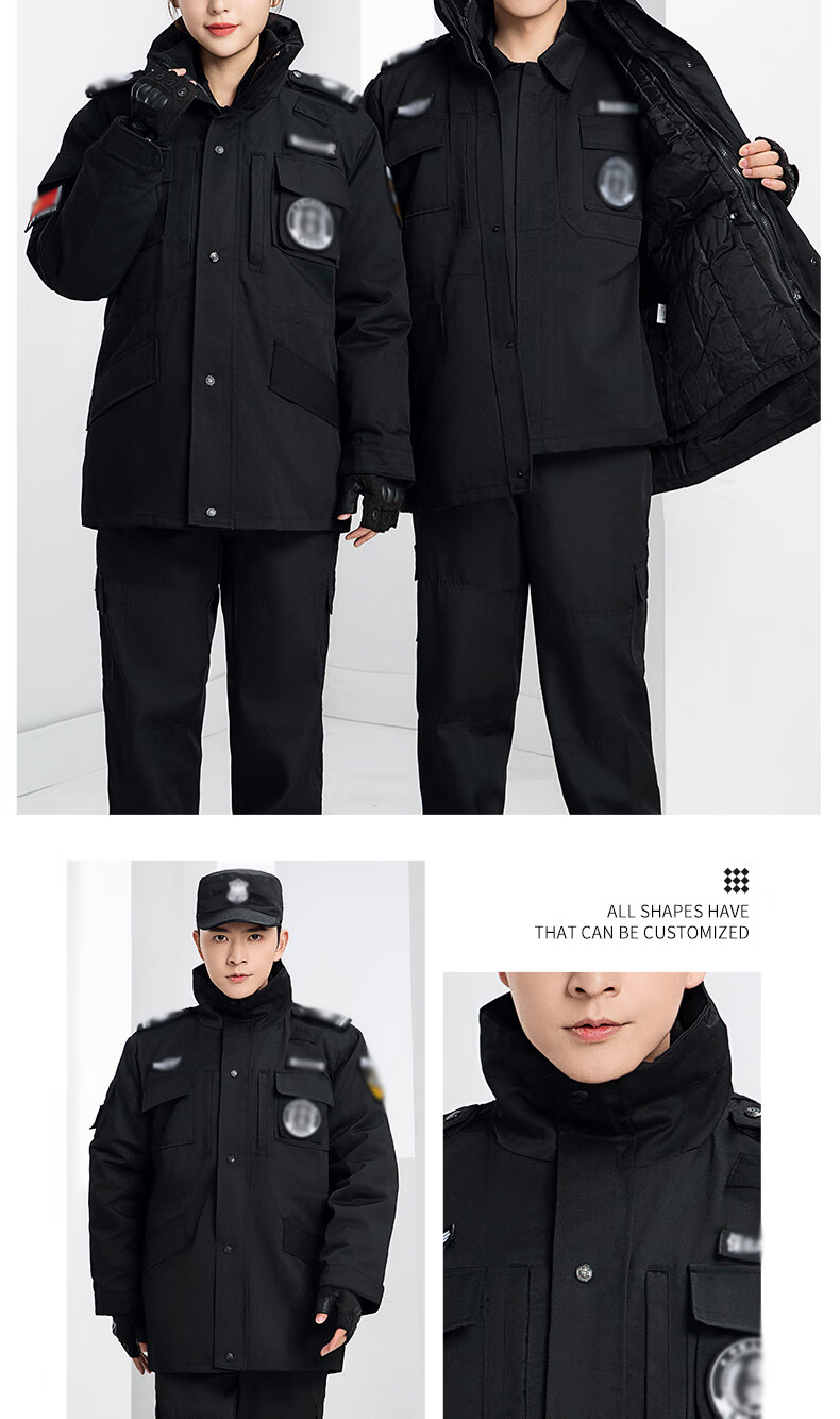 乾朗 保安服套装冬装执勤服保暖加厚加长款棉服安保棉大衣酒店物业门卫保安巡逻站岗执勤工作制服可定制logo 斜纹中长大衣+贴标180