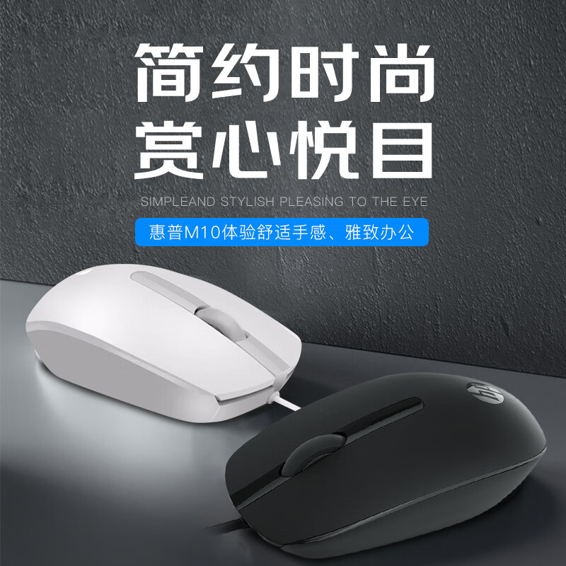 惠普(HP)M10鼠标 有线鼠标 商务办公男女生通用USB接口即插即用无需驱动人体工学有线鼠标 黑色
