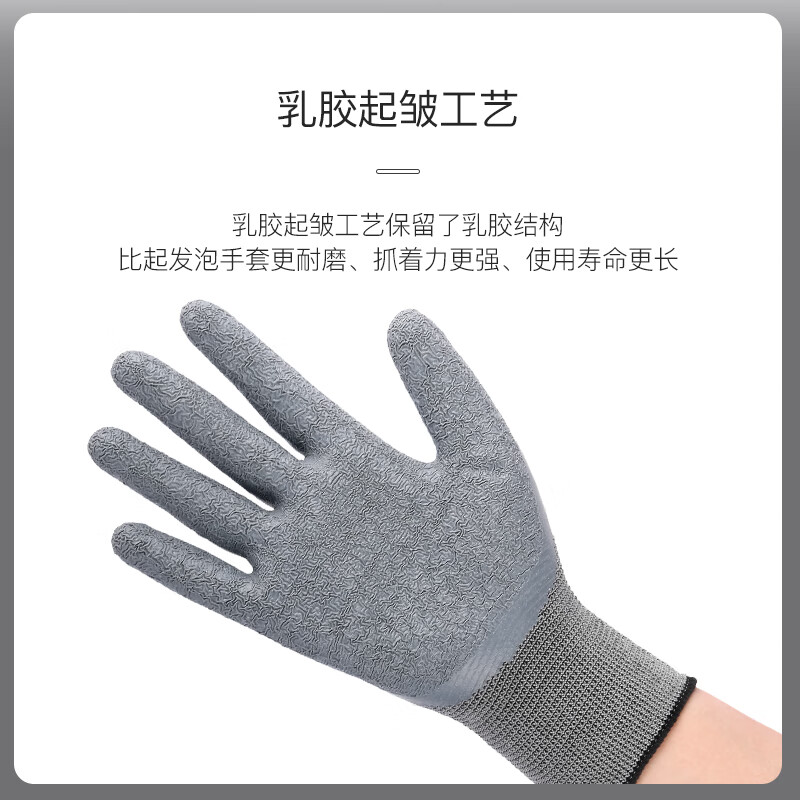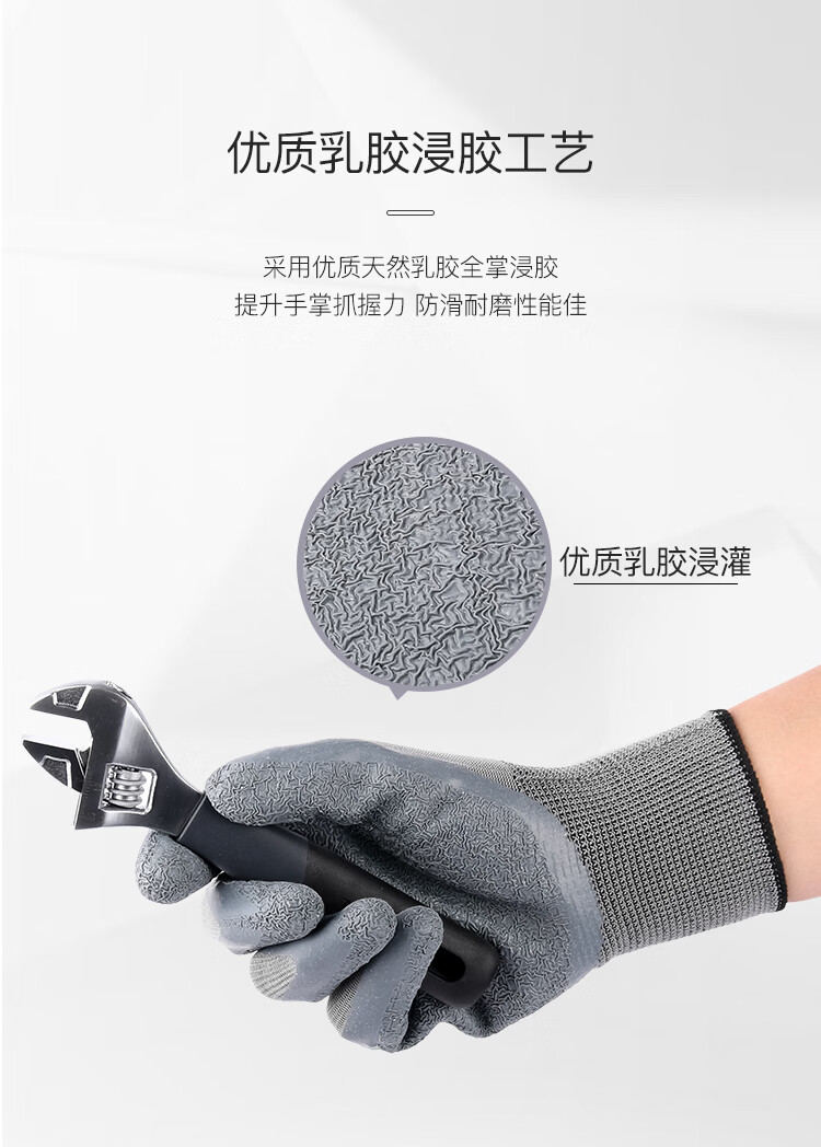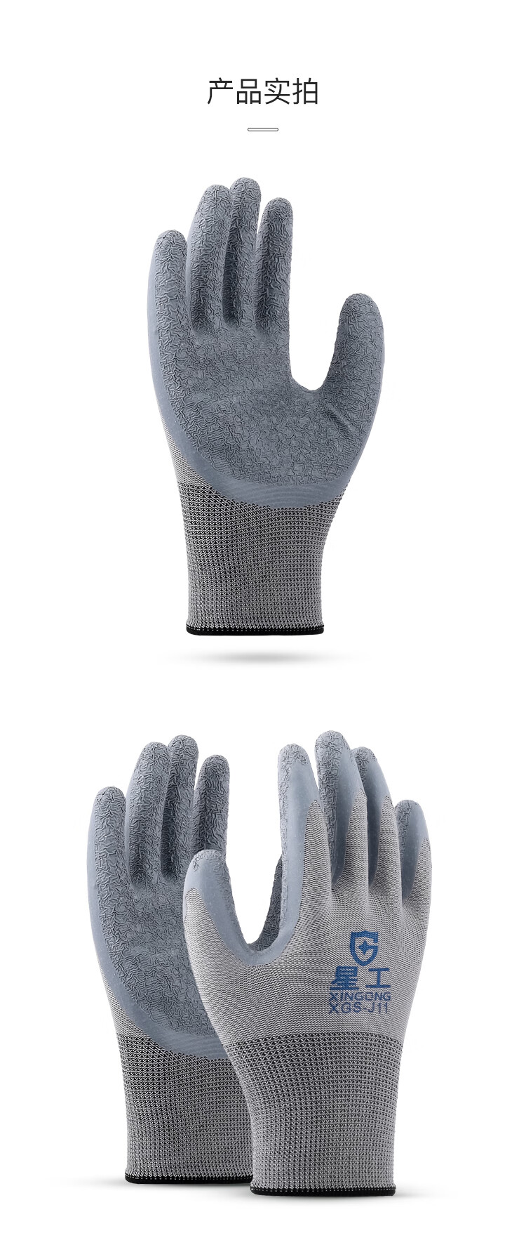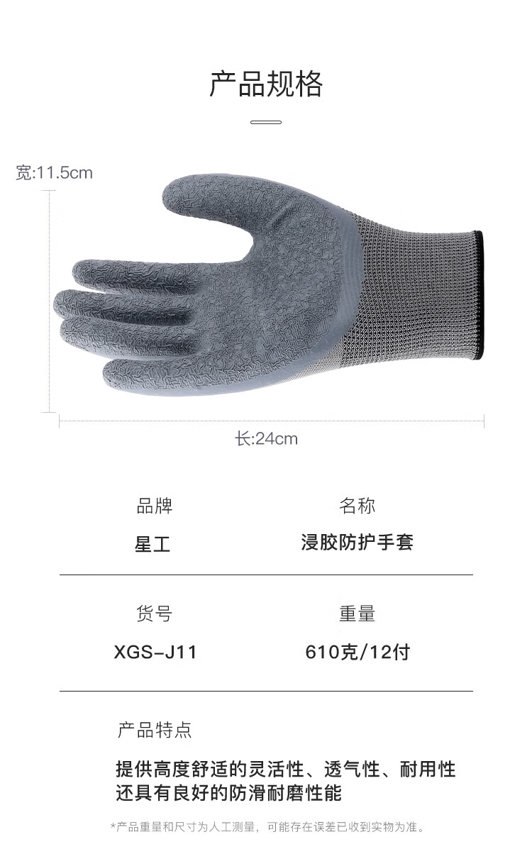 星工浸胶夏季薄款劳保手套耐磨防滑防油尼龙皱工地工作防护手套 12付XGS-J11【正品行货】