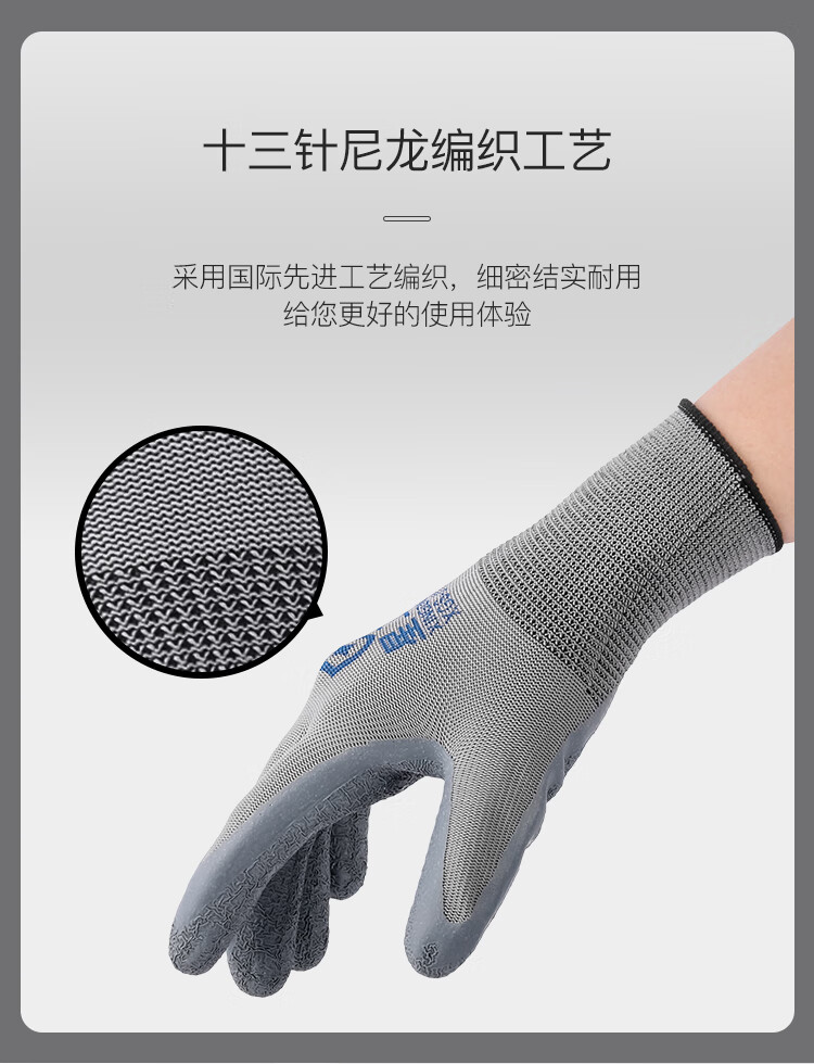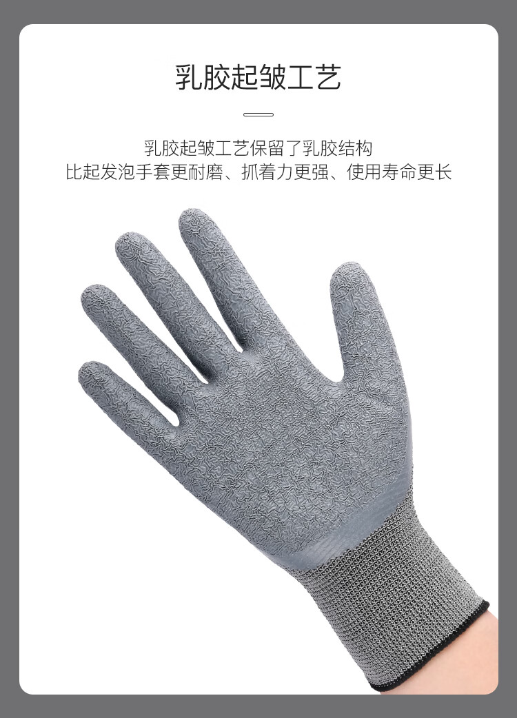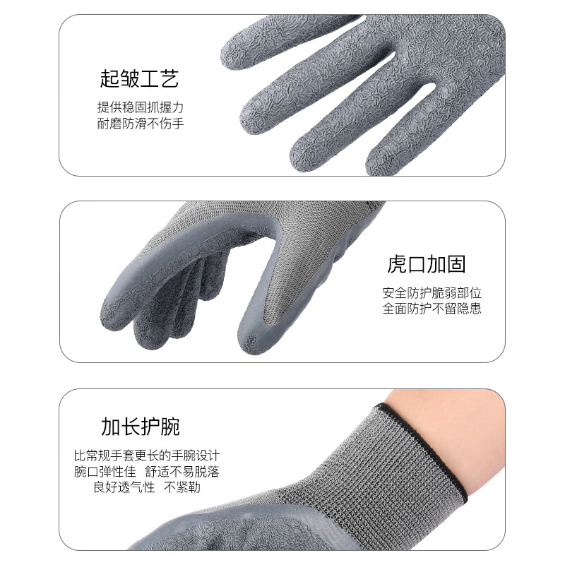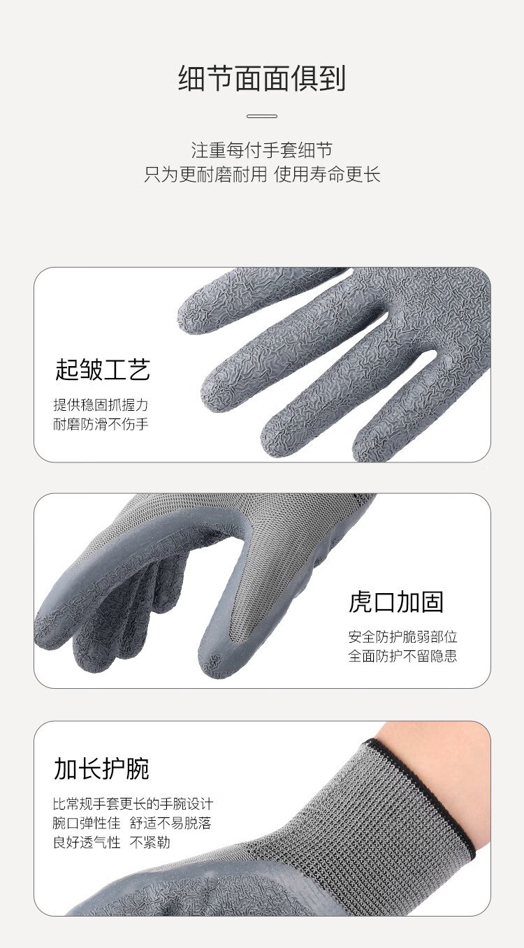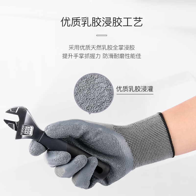 星工浸胶夏季薄款劳保手套耐磨防滑防油尼龙皱工地工作防护手套 12付XGS-J11【正品行货】
