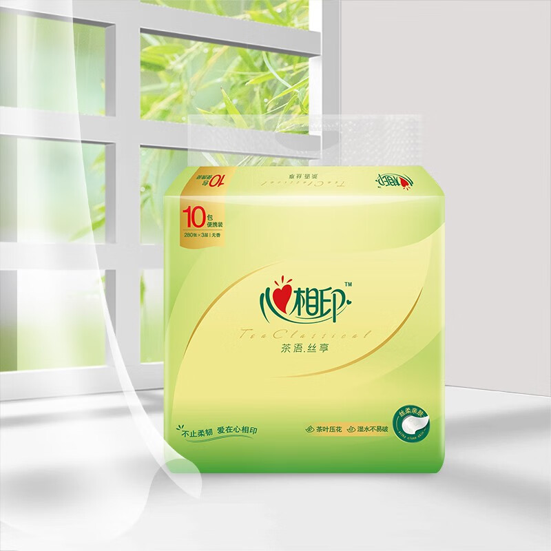 心相印抽纸茶语餐巾纸母婴适用擦手卫生纸巾便携实惠装 3层10包