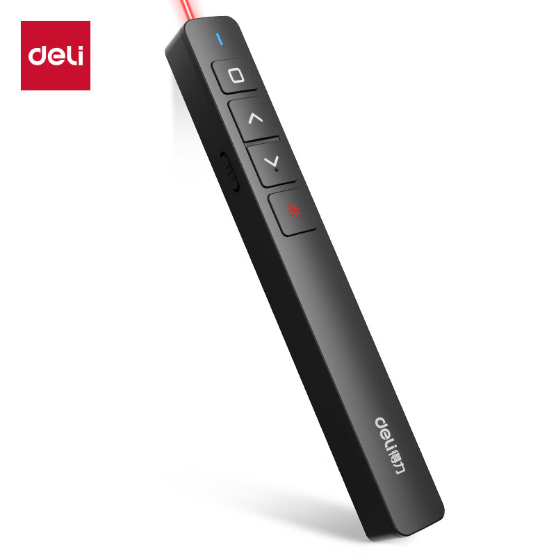 得力(deli)激光翻页笔 百米远控ppt翻页笔 教鞭演示演讲笔课件笔投影笔激光笔翻页器 一键超链接 常规型 电池款 即插即用 红光