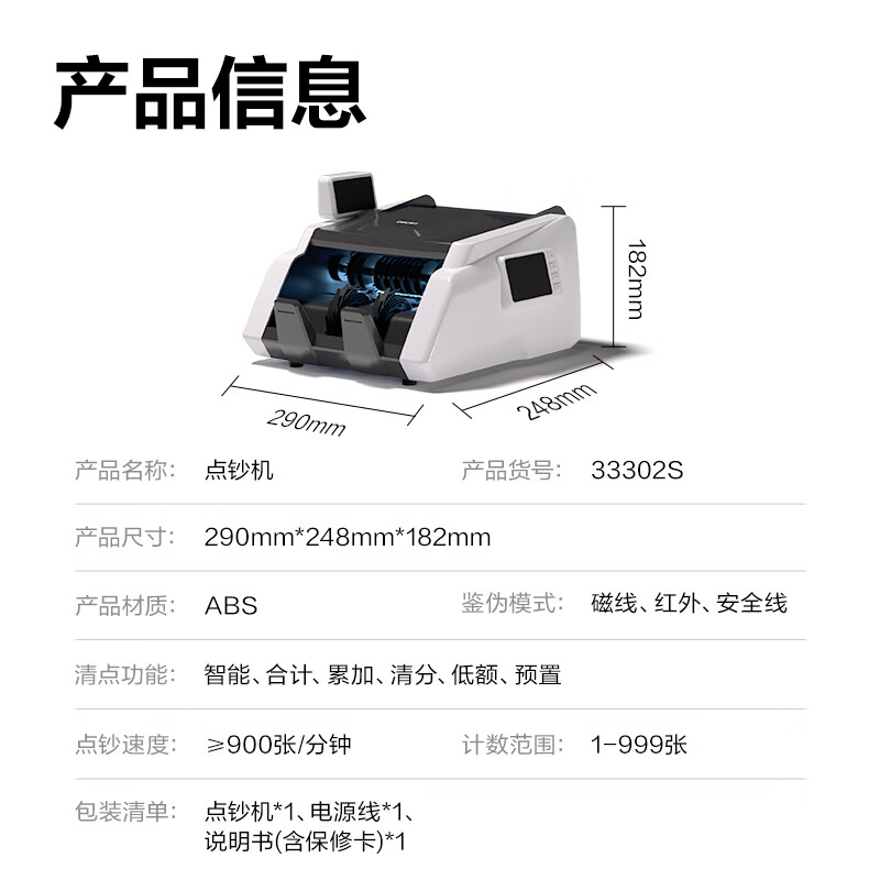 得力(deli) 点钞机支持2025新版人民币 银行专用验钞小型便携家用办公商超适用 智能真人语音播报 双屏验钞机 C类热销款4重防伪 33302S