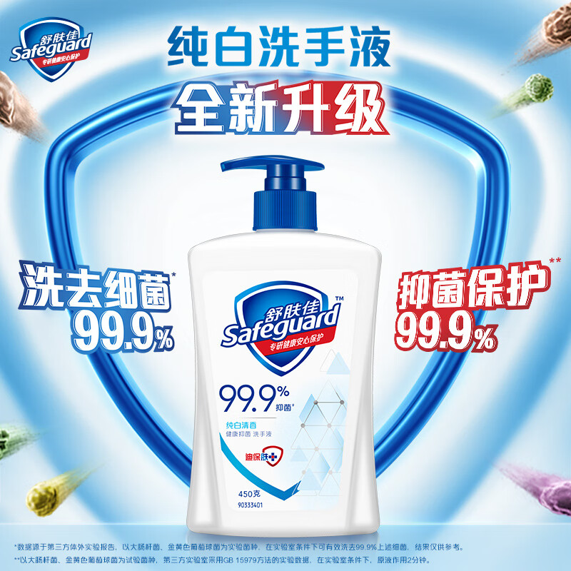 舒肤佳洗手液抑菌按压瓶杀菌消毒纯白洗手乳家庭装温和洁净超大容量大瓶 纯白225g+柠檬225g(各1瓶)