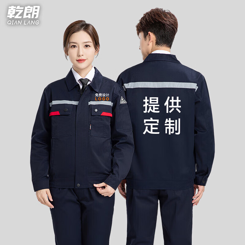 乾朗 防静电工作服套装男女夏季长袖透气耐磨劳保服带反光条电焊工服汽修工程服加油站电力局工装可定制logo 藏蓝色夏长套装175