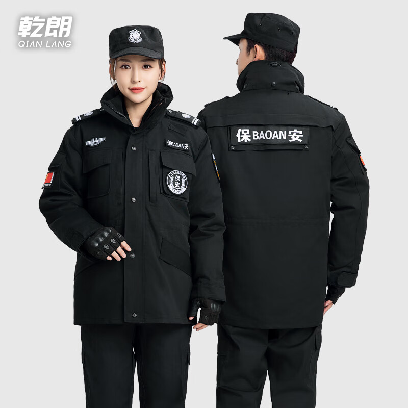 乾朗 保安服套装冬装执勤服保暖加厚加长款棉服安保棉大衣酒店物业门卫保安巡逻站岗执勤工作制服可定制logo 斜纹中长大衣+贴标180