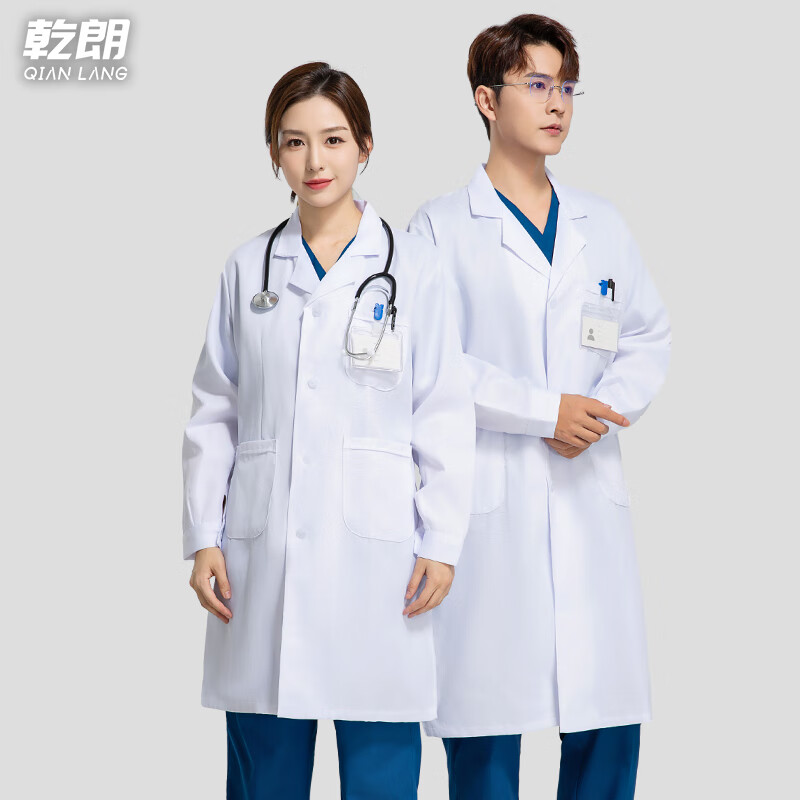 乾朗 长袖白大褂 医生诊所医师学生化学实验工作服女美容院技师工装男食品车间白大褂可现做定制LOGO 宽松男女长袖款 XL
