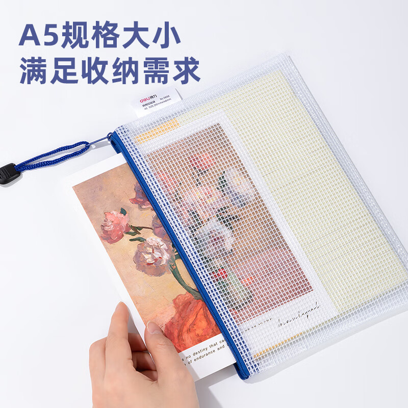 得力(deli)拉链式文件袋a5/a4网格拉链袋学习袋公文袋文件包透明资料袋试卷收纳袋考试袋文件夹专用 【A5-单个装】蓝色加厚款 5656