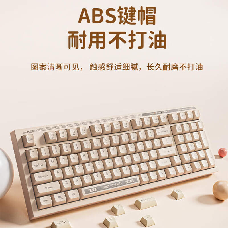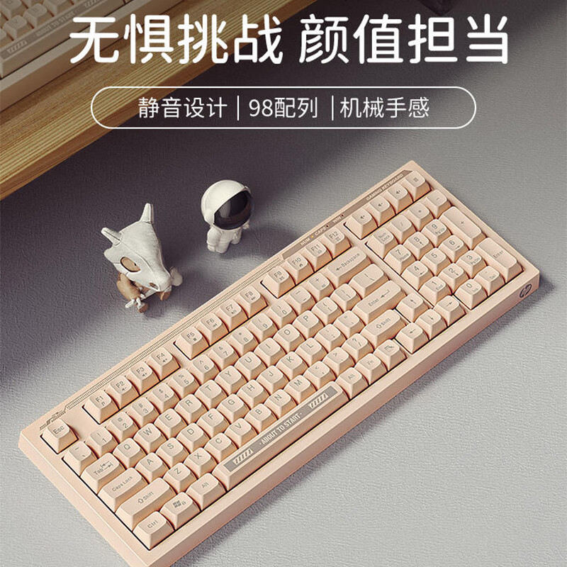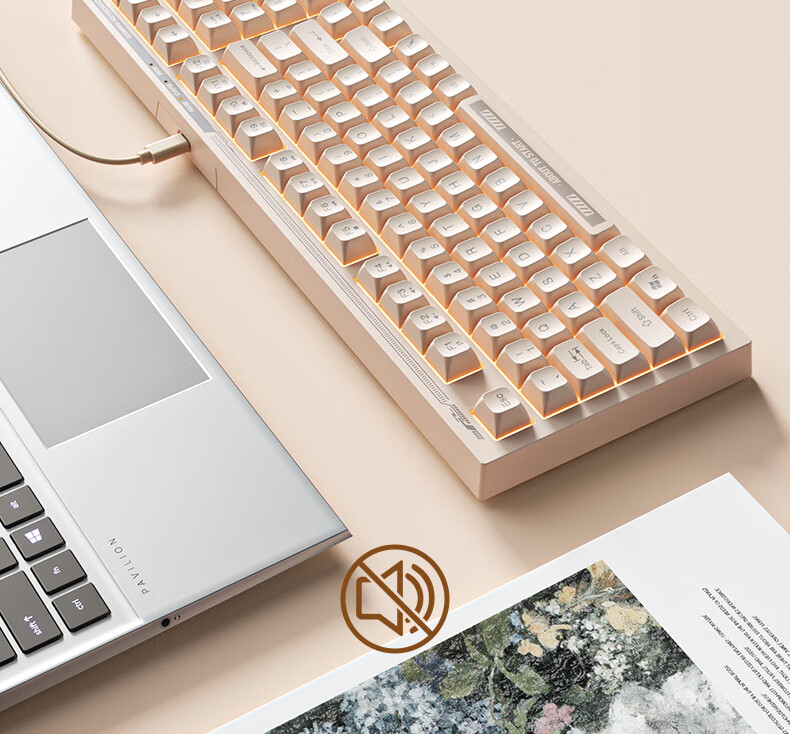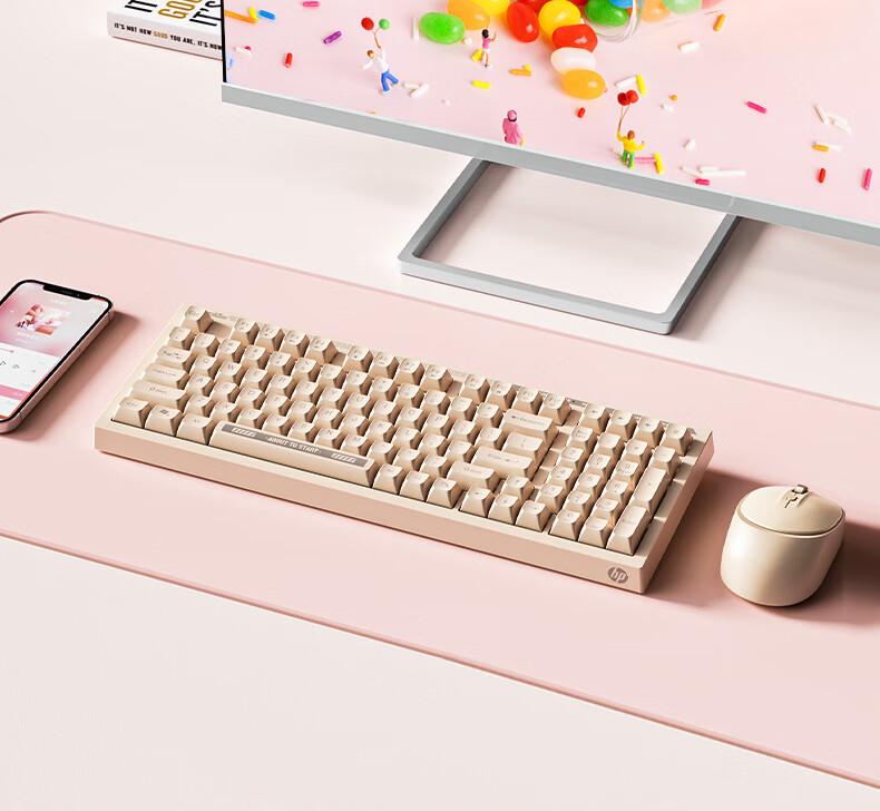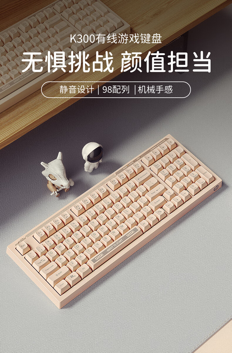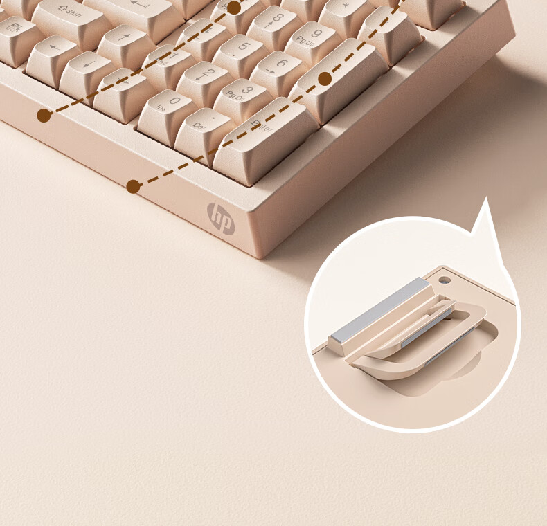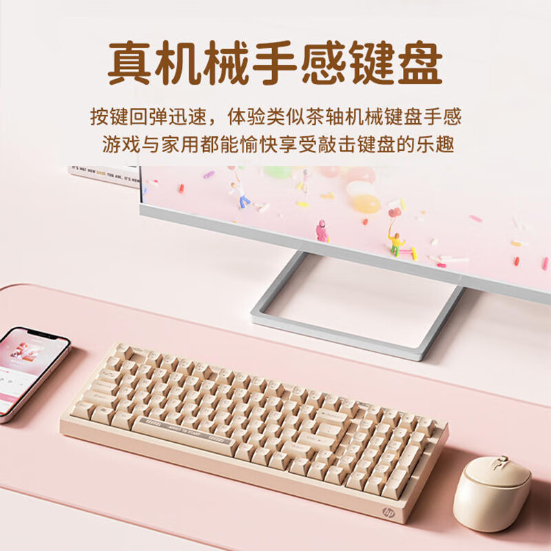 惠普(HP)K300真机械手感键盘 轻音高颜值 98客制化配列 插拔有线游戏专用吃鸡笔记本电脑电竞lol奶茶色