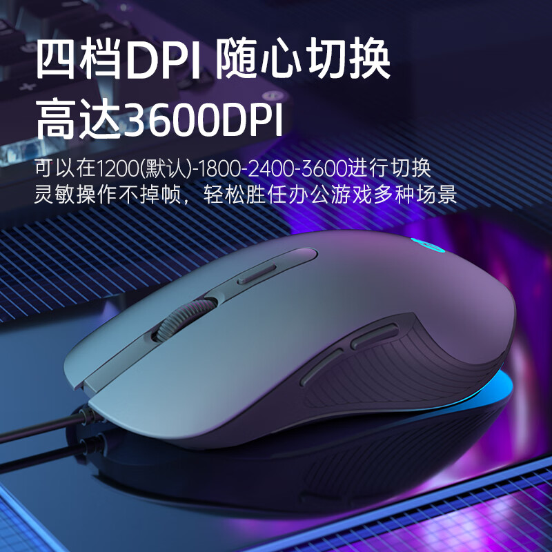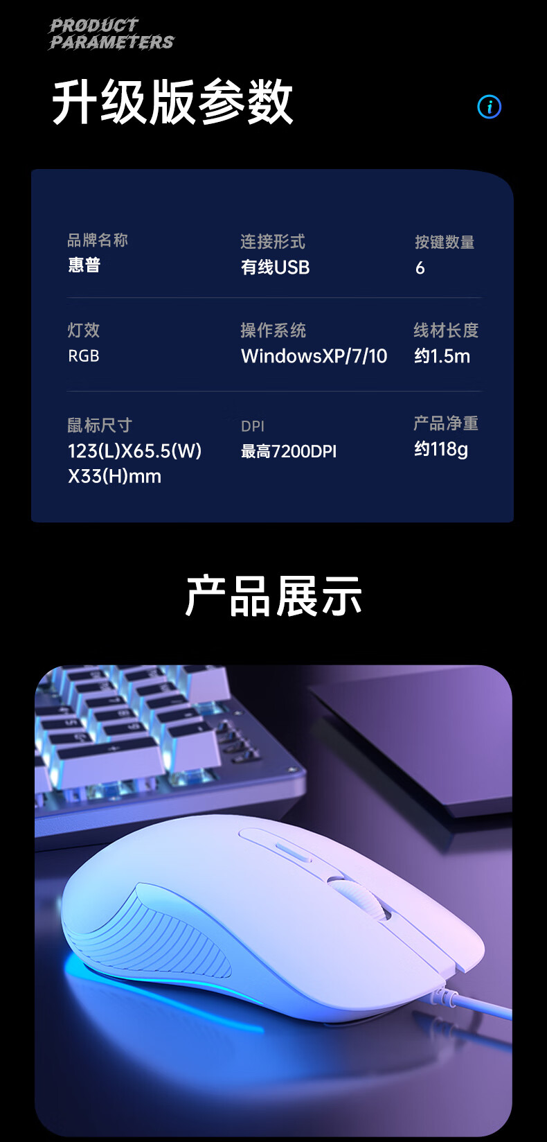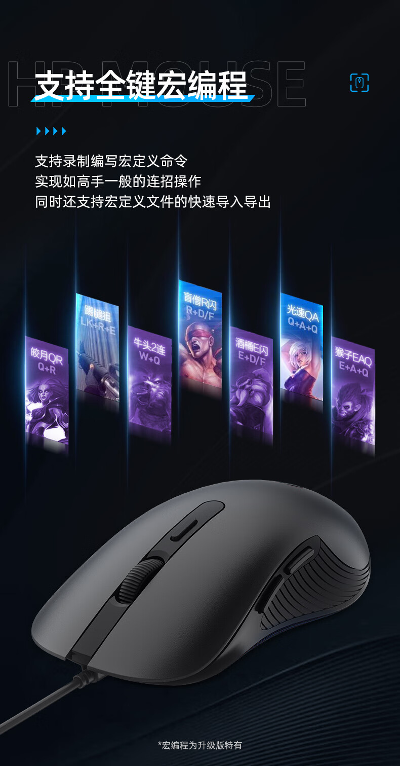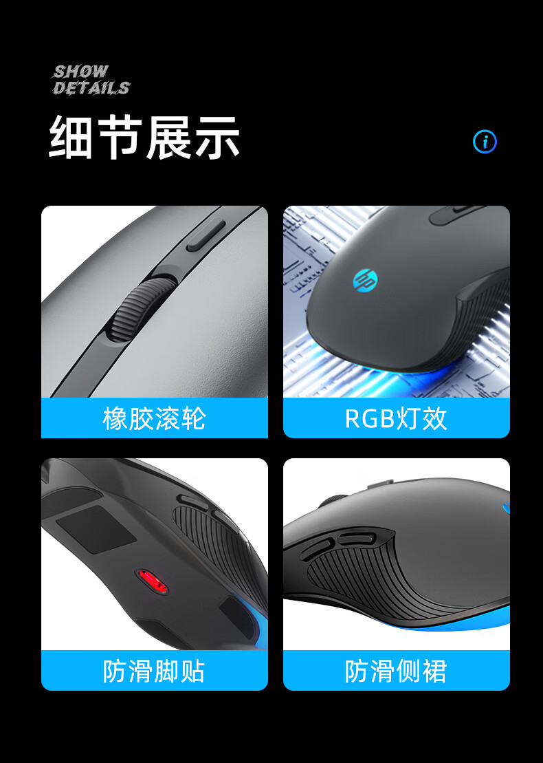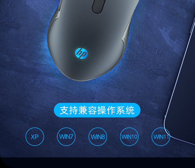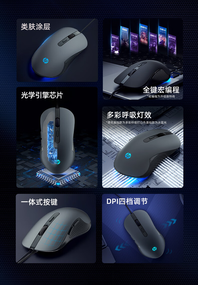 惠普(HP)游戏鼠标 学习办公电竞宏编程游戏人体工学静音轻量化有线鼠标 USB接口 台式机笔记本电脑通用 【非静音】雾灰-七彩光