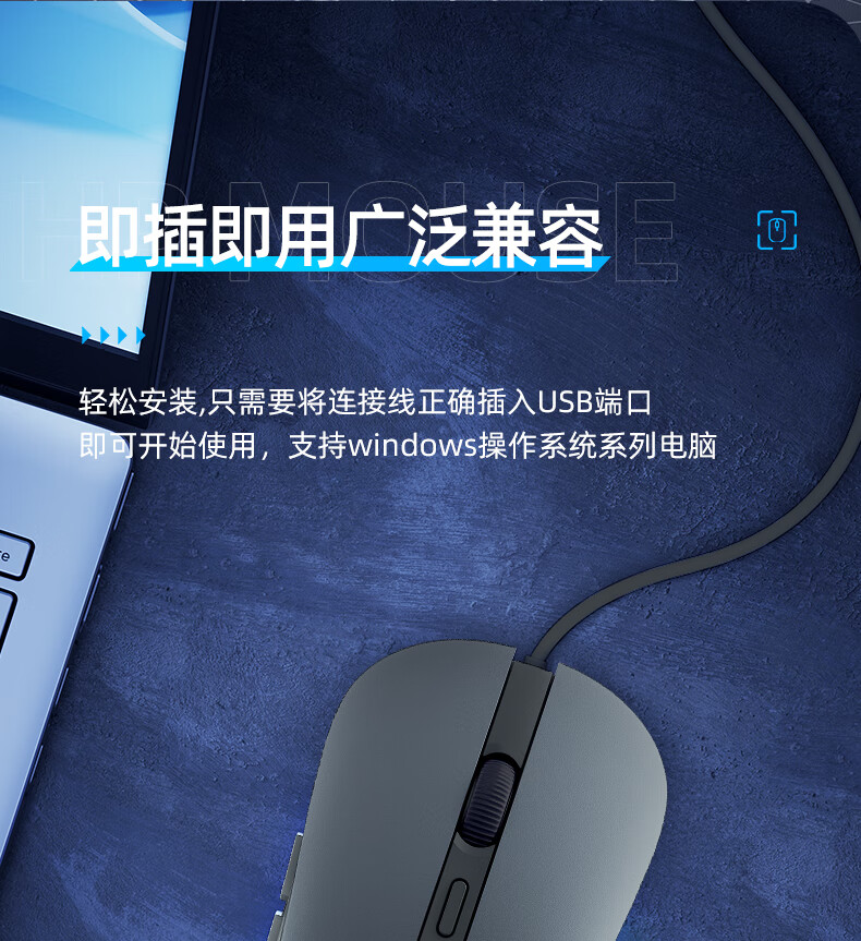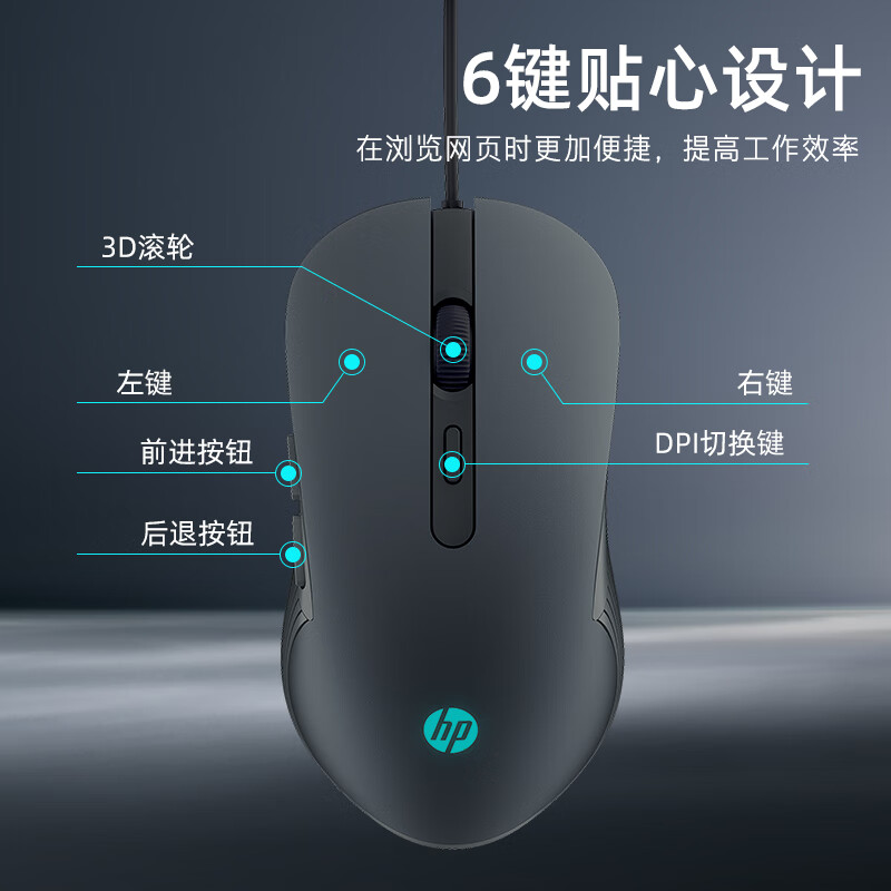 惠普(HP)M10鼠标 有线鼠标 商务办公男女生通用USB接口即插即用无需驱动人体工学有线鼠标 黑色