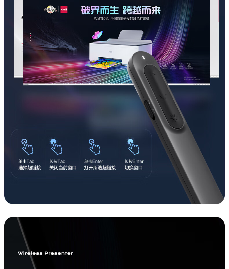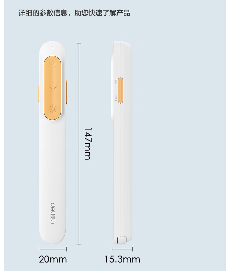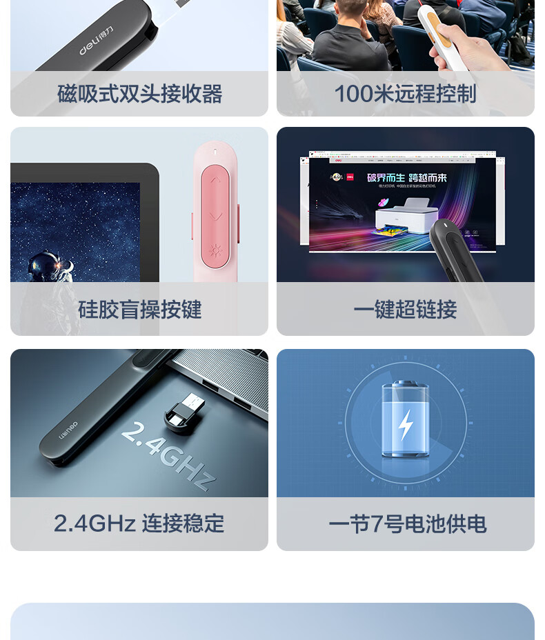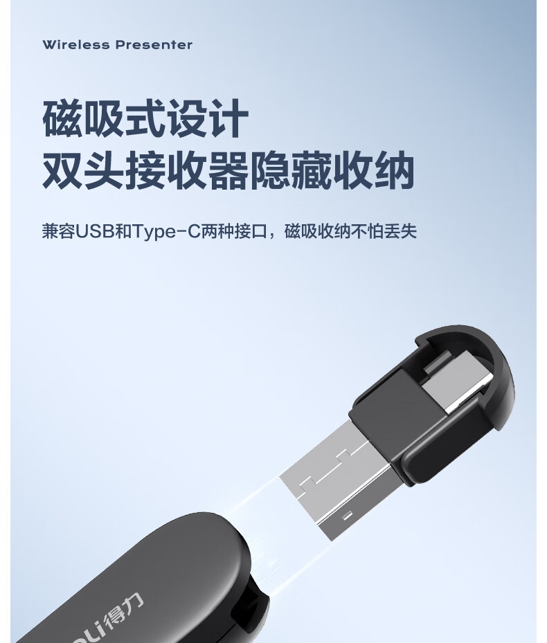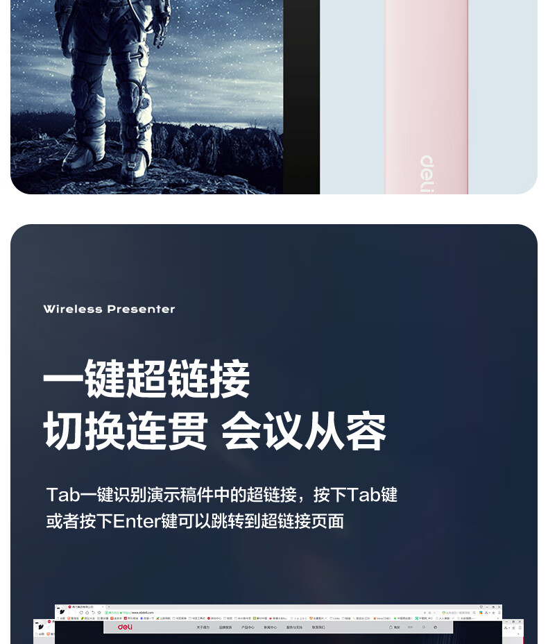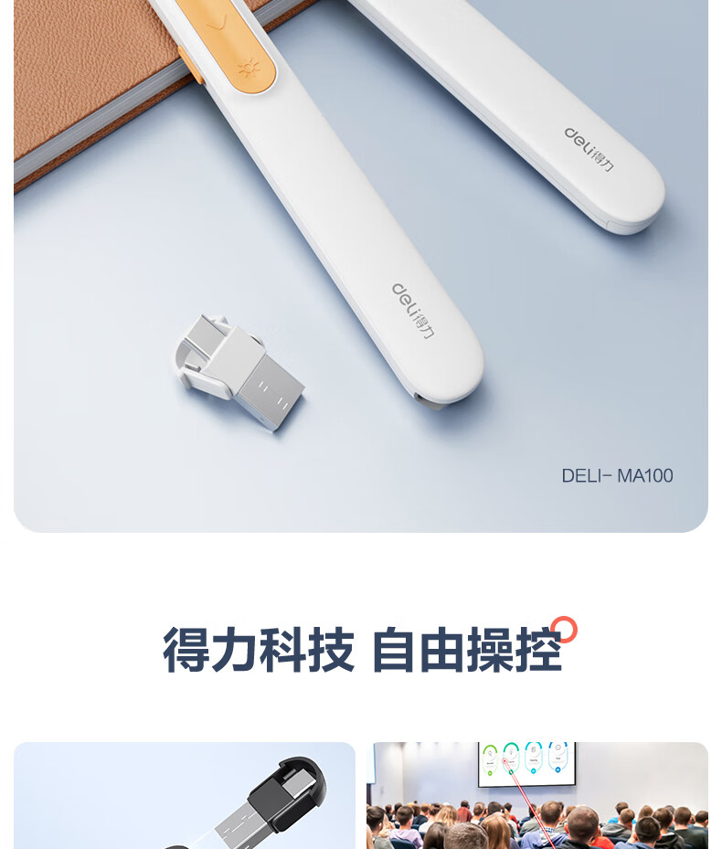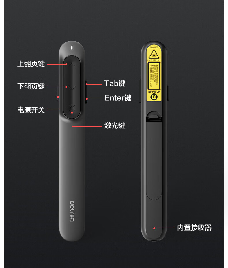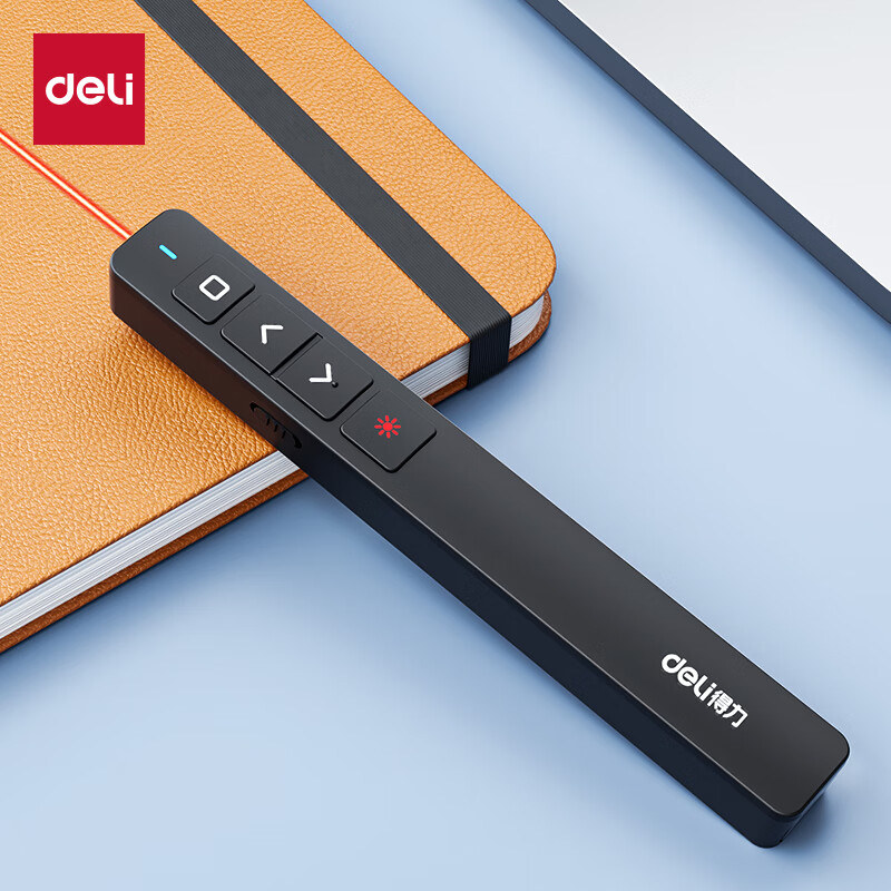 得力(deli)激光翻页笔 百米远控ppt翻页笔 教鞭演示演讲笔课件笔投影笔激光笔翻页器 一键超链接 常规型 电池款 即插即用 红光