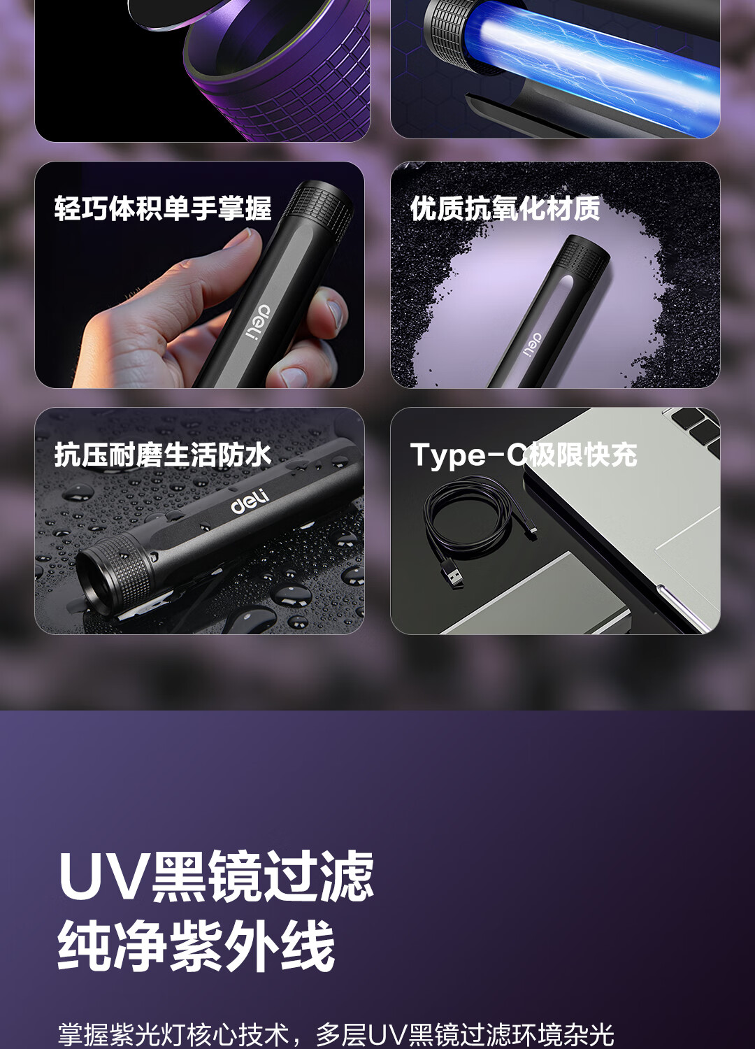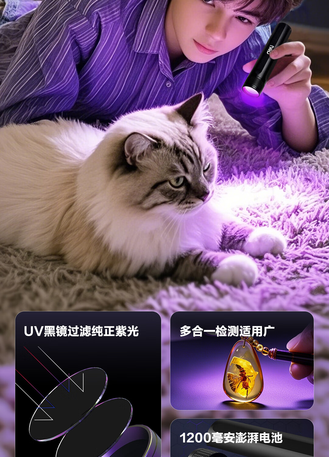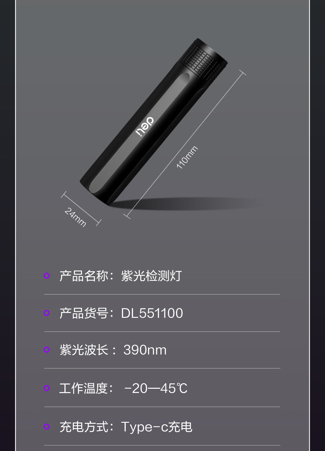 得力(deli)伍德氏灯 紫光灯鉴定果蔬猫藓玉石古玩390验烟防伪验钞笔手电