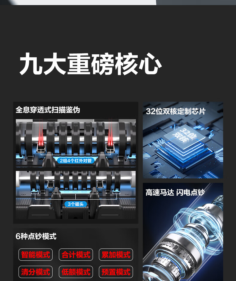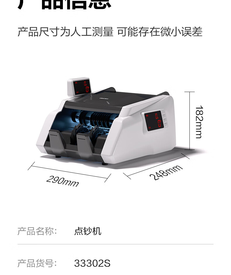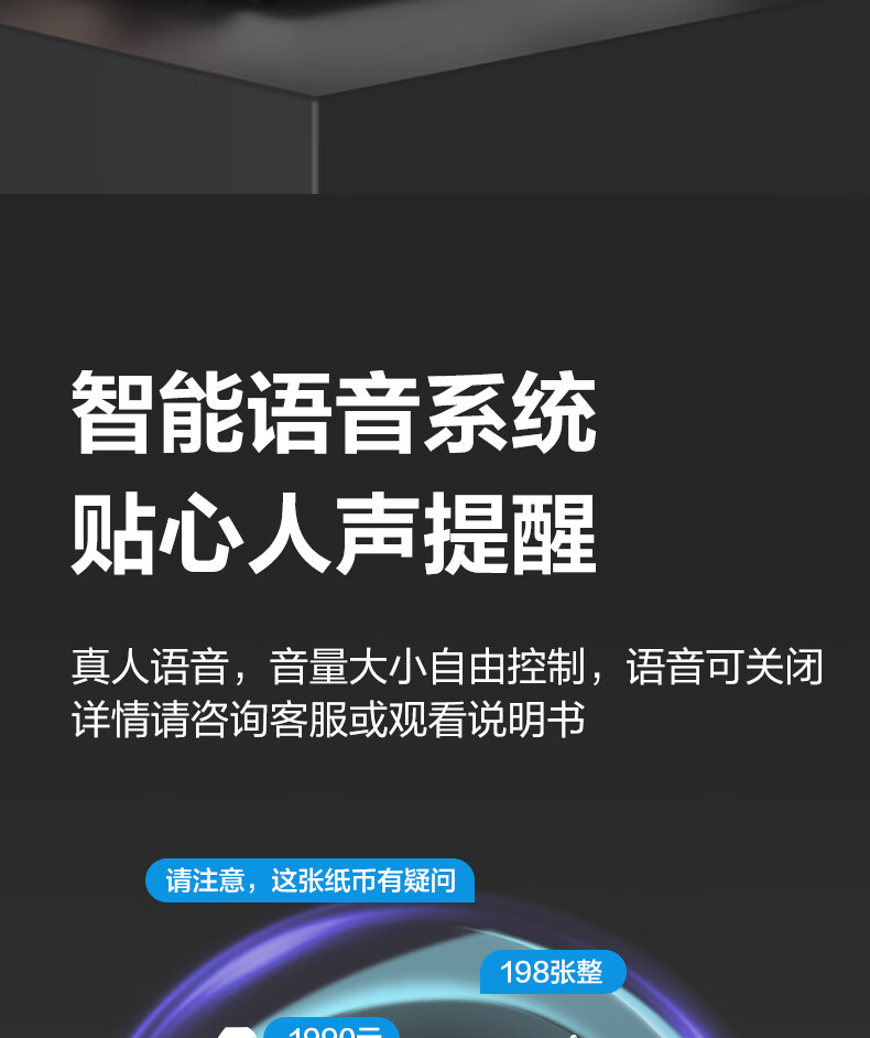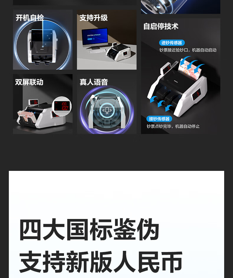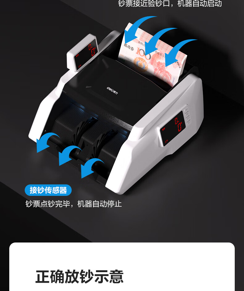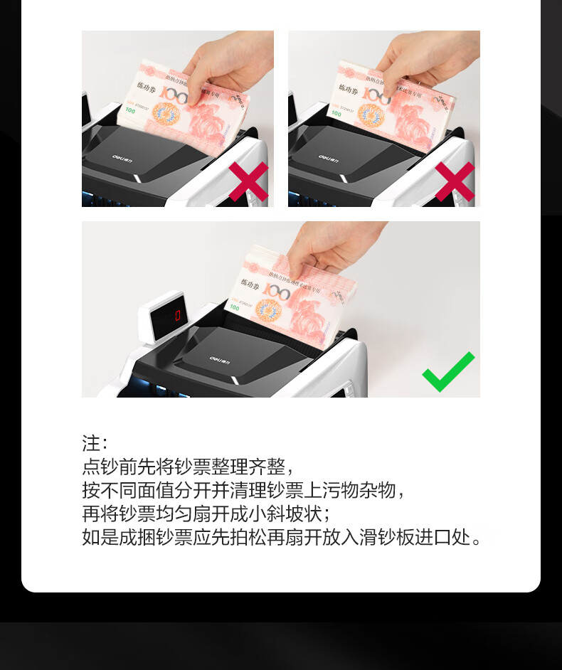 得力(deli) 点钞机支持2025新版人民币 银行专用验钞小型便携家用办公商超适用 智能真人语音播报 双屏验钞机 C类热销款4重防伪 33302S