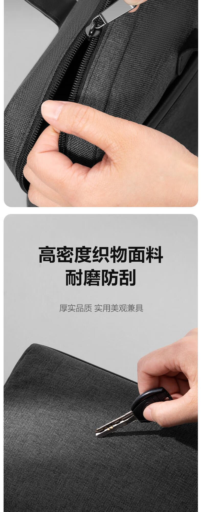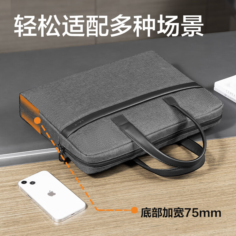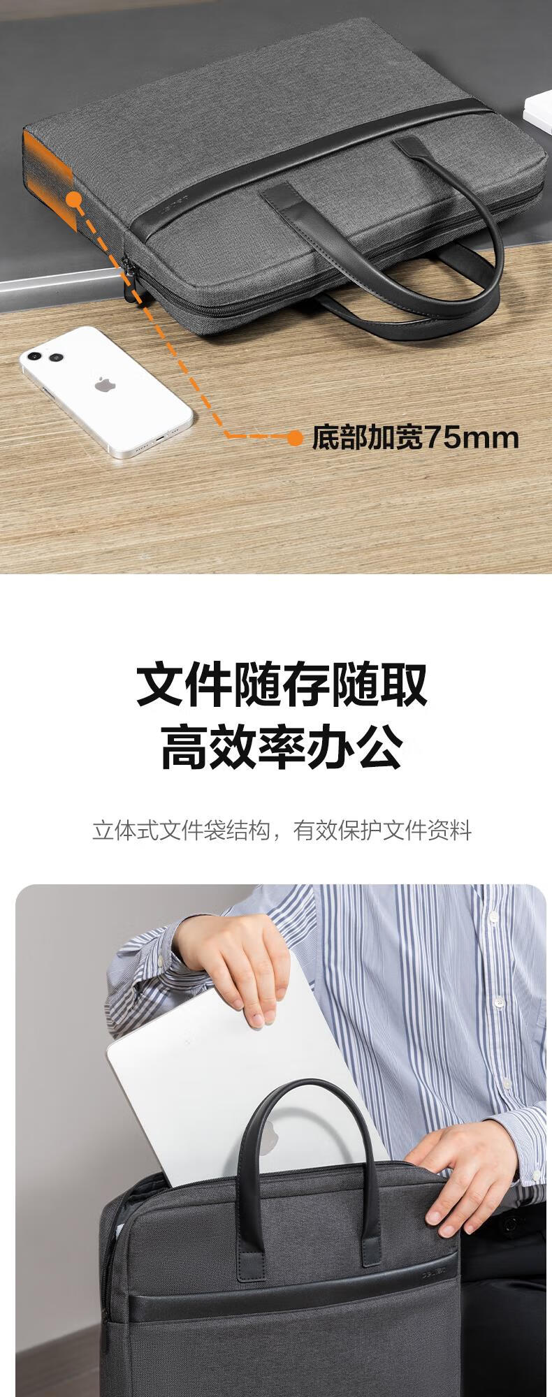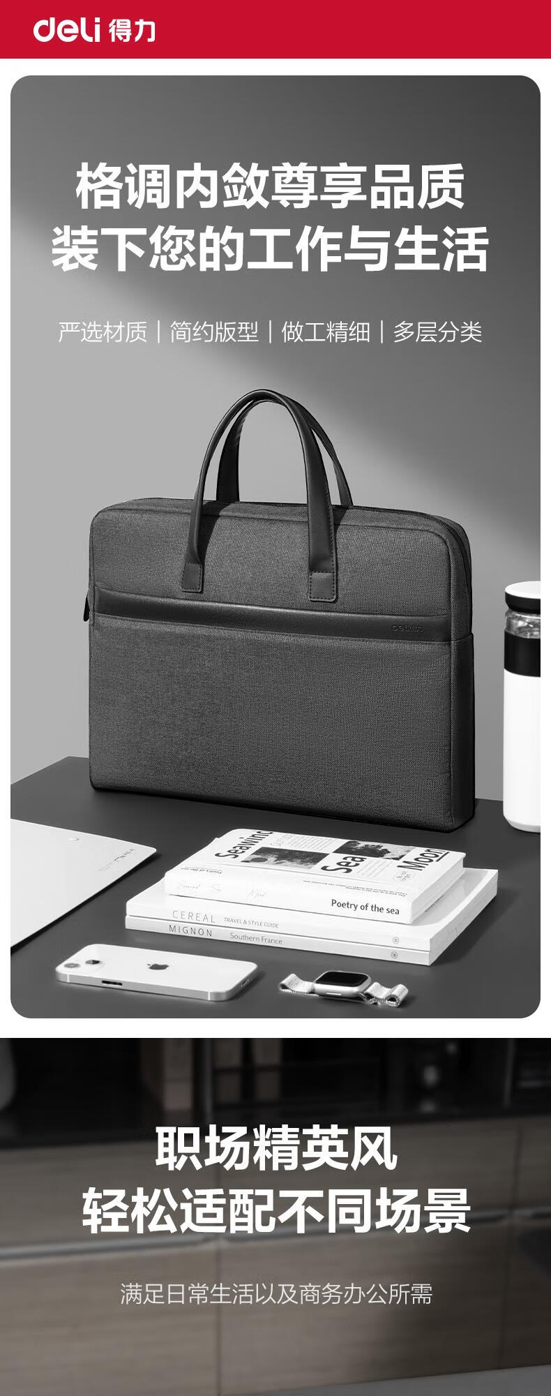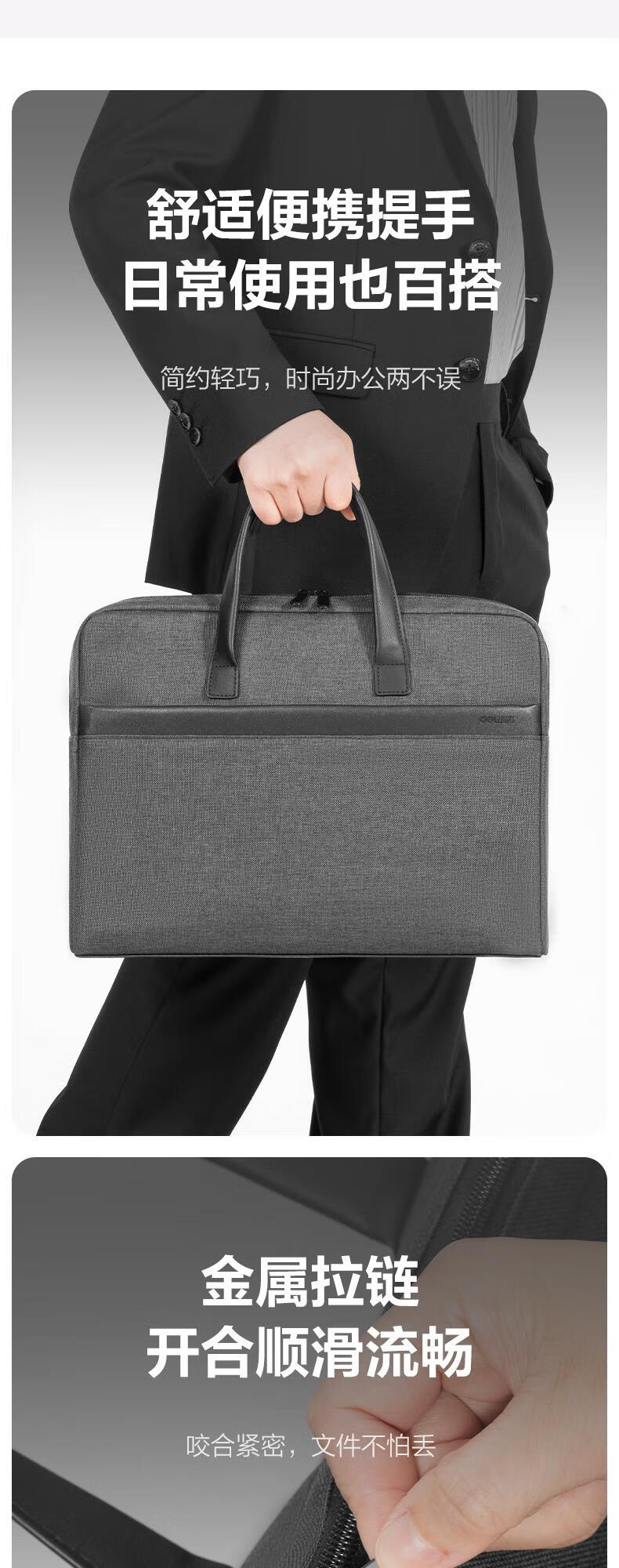 得力(deli)可定制便携式手提公文包男士拉链式文件袋办公会议收纳包加厚立体大容量帆布包电脑包通勤商务包 推荐款【灰色】商务加厚款 5590