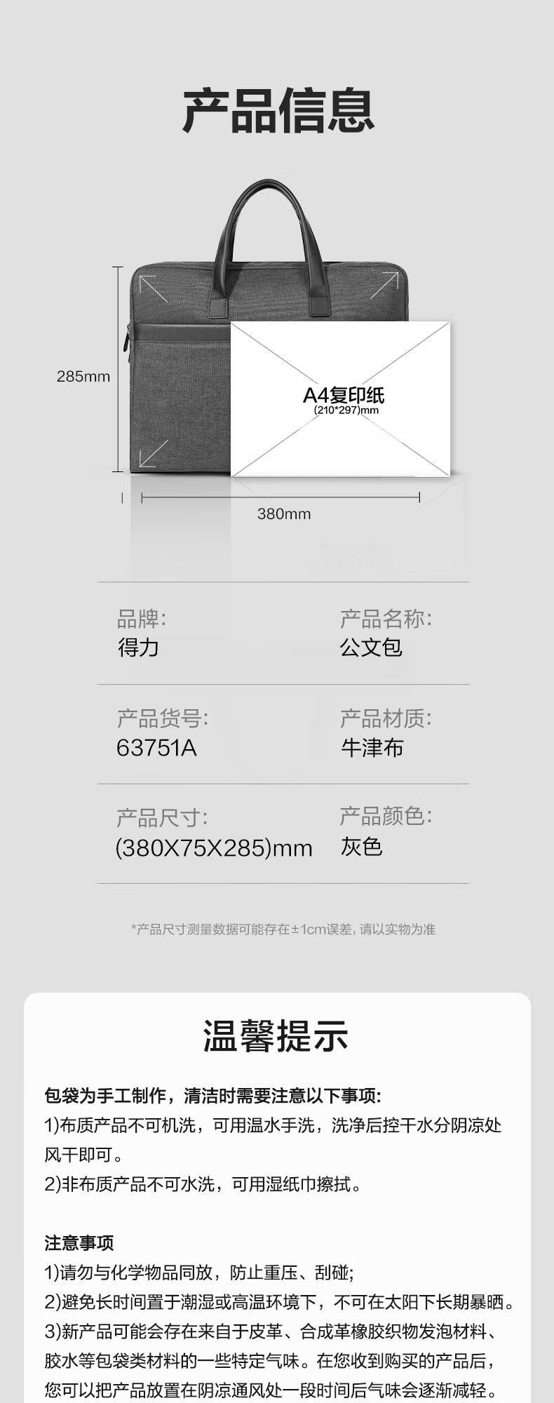 得力(deli)加宽商务公文包男女职业文件袋事务包/涤纶手提包/文件包/资料袋 灰色
